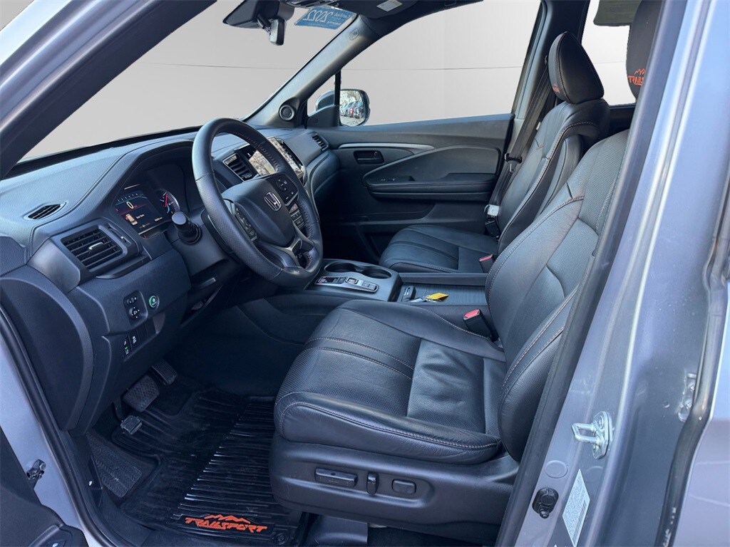 2 Sets of Keys, Adaptive Cruise Control with Low Speed Follow, Apple CarPlay & Android Auto, Backup Camera/Rearview Camera/Parking Camera, Bluetooth HandsFreeLink and Streaming Audio, Carfax One Owner, Collision Mitigation Braking System, Complimentary CarFax Vehicle History Report, Dual Zone Automatic Climate Control, Extremely Clean, Forward Collision Warning, Lane Departure Warning, Lane Keeping Assist System, Leather Trimmed Seats & Heated Front Seats, One-Touch Power Moonroof w/ Tilt Feature, Power Taligate/Power Liftgate, 3rd row seating, Push Button Start, Remote Engine Starter/Remote Start/Remote Car Starter, Road Departure Mitigation System, Pilot TrailSport, 4D Sport Utility, 3.5L V6 24V SOHC i-VTEC, 9-Speed Automatic, AWD, Lunar Silver Metallic, Black w/Leather Seat Trim, 4-Wheel Disc Brakes, ABS brakes, Air Conditioning, Auto High-beam Headlights, Automatic temperature control, Blind Spot Information (BSI) System warning, Brake assist, Delay-off headlights, Electronic Stability Control, Exterior Parking Camera Rear, Forward collision: Collision Mitigation Braking System (CMBS) + FCW mitigation, Four wheel independent suspension, Front dual zone A/C, Front fog lights, Fully automatic headlights, Lane departure: Lane Keeping Assist System (LKAS) active, Memory seat, Panic alarm, Power driver seat, Power Liftgate, Power steering, Power windows, Rear air conditioning, Rear window defroster, Rear window wiper, Remote keyless entry, Security system, Speed control, Speed-sensing steering, Speed-Sensitive Wipers, Steering wheel mounted audio controls, Traction control, Variably intermittent wipers, Wheels: 18" Exclusive Gloss Black Alloy.