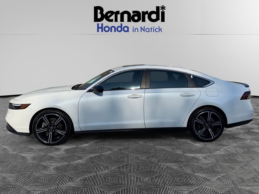 The Honda Accord Hybrid Sport's exceptional fuel efficiency, with an EPA-estimated 46 city/41 highway MPG, makes it an ideal choice for the modern driver seeking both performance and sustainability. Powered by a 2.0L 16V DOHC engine and eCVT transmission, this vehicle delivers a smooth and responsive driving experience, ensuring you'll enjoy every mile.
