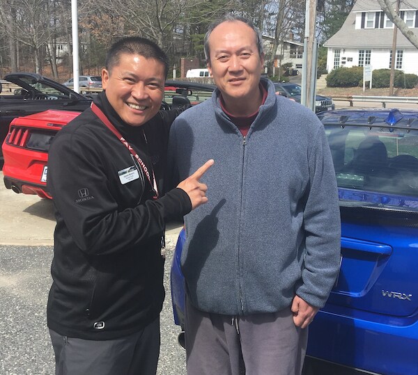 Good Friday April 15th: Jayson helping long-time client Enroy get set-up in his brand new CRV.